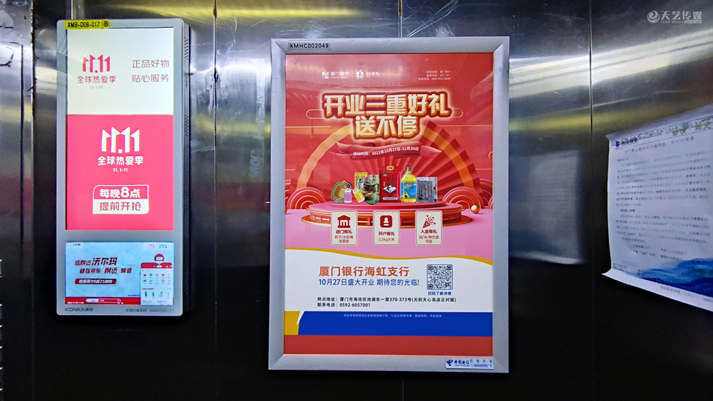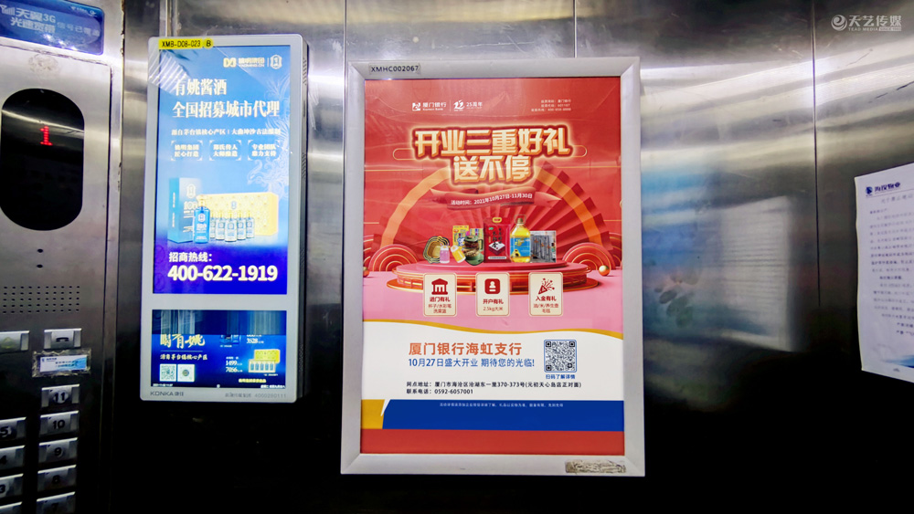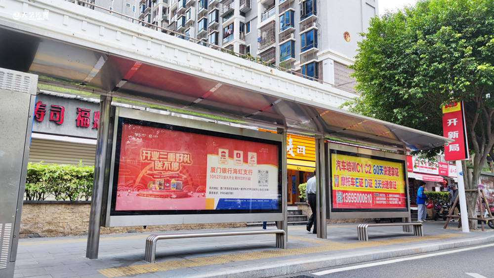 此次廈門(mén)銀行海虹支行選擇與天藝傳媒進(jìn)行戶外媒體投放的合作,投放海滄區(qū)(以海滄的生活區(qū)、海虹支行周邊區(qū)域?yàn)橹?的多個(gè)戶外廣告媒體,包括公交候車亭媒體、電梯框架廣告、社區(qū)公告欄媒體及社區(qū)出入口的道閘媒體等。